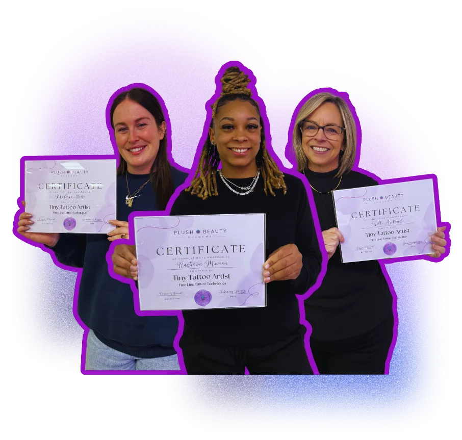 “The tiny tattoo class with Cassie was comprehensive, and it was evident that she is a highly skilled instructor. I now feel confident to offer this service at my salon and eagerly anticipate returning to Plush Beauty Academy for further training.”